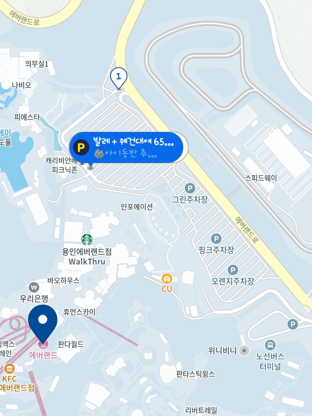 - 위치: 에버랜드 정문 바로 앞에 있는 VIP 주차구역 근처 (안내 요원 상주)