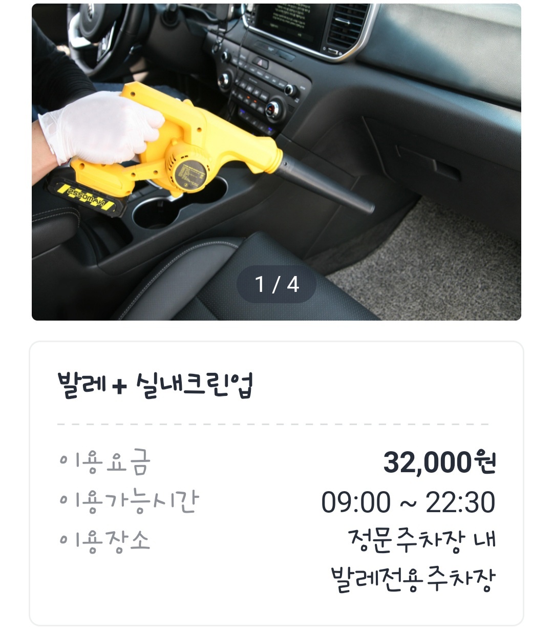 발렛 맡기면서 차량 실내 청소까지 부탁할 수 있어요.